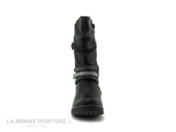 Wipop WOLFFY Noir – Boots Fille Noires – Oeillets Fleurs Argent