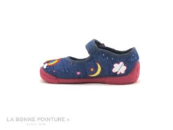 Le lacet bicolore bleu marine et jaune traverse 4 oeillets afin d’ajuster la chaussure au peton de chacun.