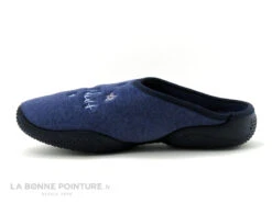 Cette pantoufle mule Messieurs est en toile bleu trÚs foncé (presque noir), avec un liseré gris et un petit triangle sur le cÎté.