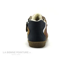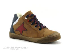 Ce bottillon garçon est en cuir marron clair, avec le contrefort bleu marine Ă l’arriĂšre et une partie d’Ă©toile rouge sur le cĂŽtĂ©.