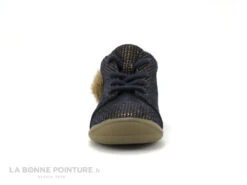 La chaussure montante fille Bellamy se ferme avec le lacet rond bleu marine, qui traverse 4 oeillets métalliques.