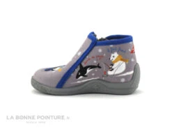 La doublure des pantoufles zippées garçon est en tissu éponge, et la semelle de propreté en cuir possÚde une voûte plantaire.