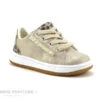 Le lacet irisĂ© beige permet d’ajuster parfaitement la chaussure Bellamy Rafa au peton de l’enfant.