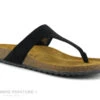 La semelle interne de cette tong avec passe orteil est en cuir velours, pour un cadre sain et agrĂ©able tout l’Ă©tĂ©.