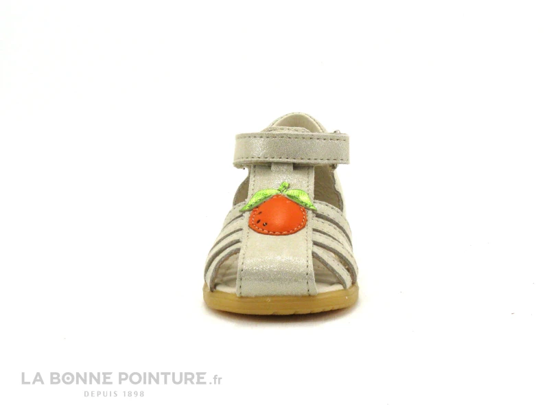Outre la qualité et le confort, la sandale montante bébé fille Bopy REGALADE propose un look trÚs girly, toute dorée avec un joli fruit orange sur la bride supérieure.