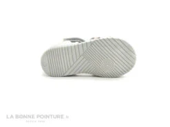 Ce nu-pieds enfant est en cuir gris clair irisé, avec un peu de rose et de blanc.