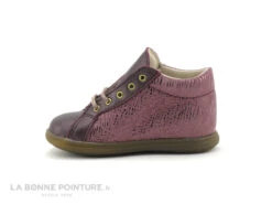 Fermeture efficace de la chaussure fille premier ùge Bopy avec un lacet rose pailleté, traversant 5 oeillets dorés.