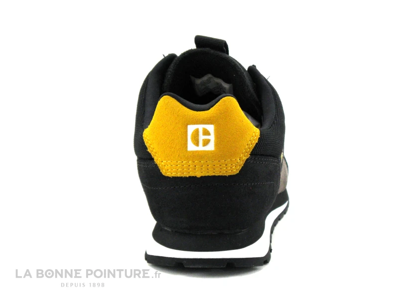 Cette basket de ville Homme Caterpillar Ventura P110702 est en cuir velours et textile noir, gris et jaune foncĂ©. La marque Caterpillar s’affiche en jaune sur le cĂŽtĂ© externe de la chaussure.