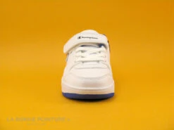 Ces baskets basses fille Champion sont en simili cuir noir, avec des broderies roses et bleues ainsi que le logo de la marque Champion en perles argent.