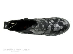 Cette bottine Dockers Femme est en simili noir aspect légÚrement froissé, imprimé de fleurs aux tons de gris argenté et de doré.