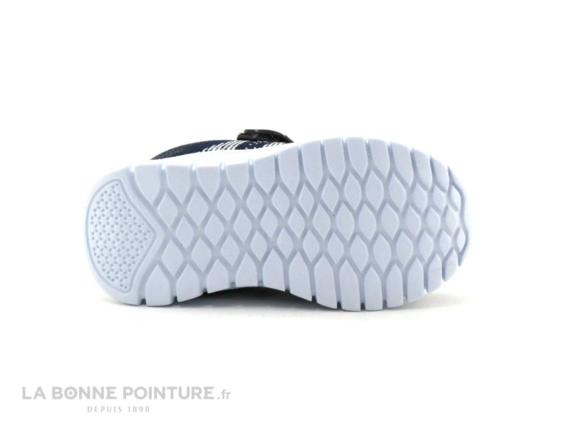 Ces sneakers enfant sont en maille bleu marine, avec un peu de blanc.