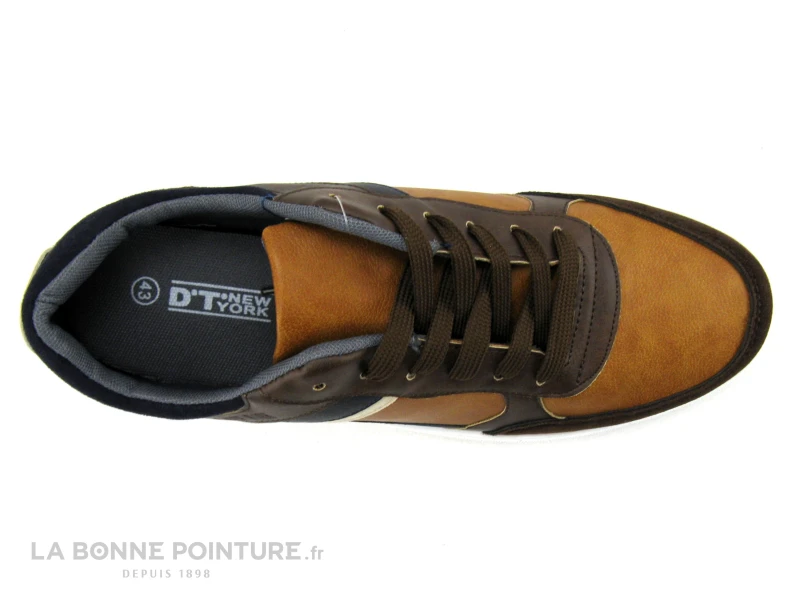 La basket basse DT New York mélange des empiÚcements marron clair et marron camel, avec un peu de bleu marine.