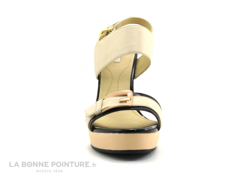 Ultra fĂ©minines et trĂšs chics, les sandales compensĂ©es beiges et noir verni Geox Janira, des nu-pieds mode Ă plateforme Ă s’offrir pour l’Ă©tĂ© !