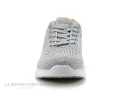 Cette paire de sneakers Homme Kappa Antor mélange textile et matiÚres synthétiques aux tons de gris, de noir, de marron camel et de bleu.
