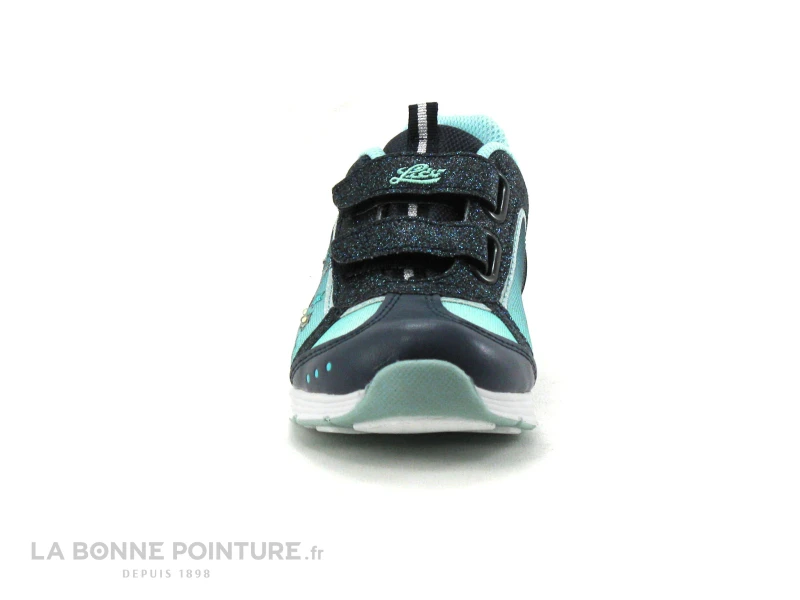 Cette tennis clignotantes fille est bleu marine et turquoise, avec des parties pailletées et une licorne argentée sur le cÎté externe de la chaussure.