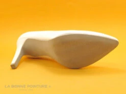 Le talon aiguille des chaussures MT allongera vos jambes d’une dizaine de centimĂštres, blanc verni comme la tige de l’escarpin.