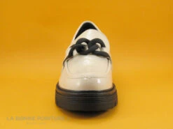Ce mocassin plateforme Marco Tozzi 2-24705-29 est en simili cuir blanc cassĂ©, Ă l’aspect verni et lĂšgĂšrement plissĂ©.
