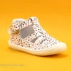 La petite boucle rose gold permet de fermer la chaussure fille Minibel, réglable sur 5 positions.