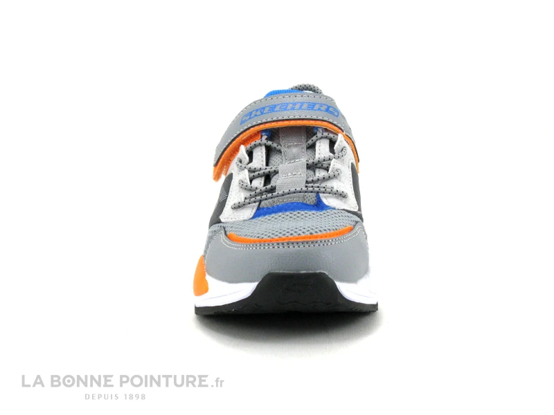Fermeture facile de la chaussure sport enfant Skechers avec la bride Ă scratch.