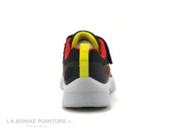 Cette basket mode garçon Skechers est en textile noir et matiÚres synthétiques, avec du jaune et du rouge sur les cÎtés.