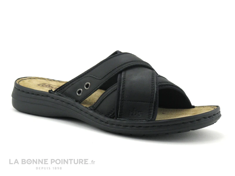 Cette mule TBS Homme est en cuir épais noir mat, composée de larges brides croisées.