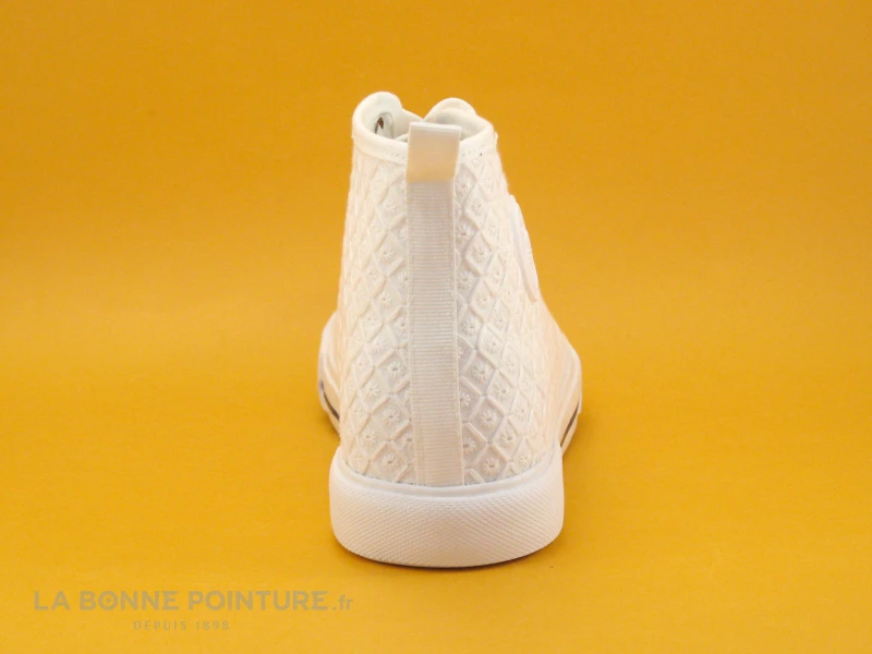 Cette tennis montante Tropézienne 42551 est fabriquée en coton biologique blanc avec broderie.