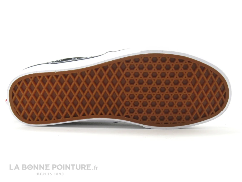 La semelle de marche est souple avec Ă l’arriĂšre la petite Ă©tiquette rouge “Vans Off the Wall”.