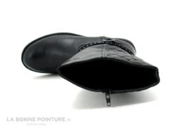 Cette botte fille est en simili cuir noir, avec une partie matelassĂ©e sur l’arriĂšre.